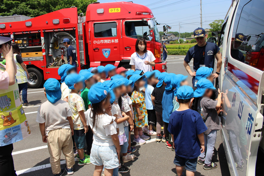 にじ・そら組はクラスごとに、消防車の説明をしていただき、みんな真剣に話を聞いていました。