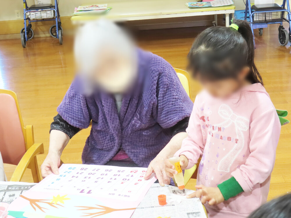 そら組のお友だちがひまわり荘に行き、利用者さんと一緒にカレンダー作りを行いました。