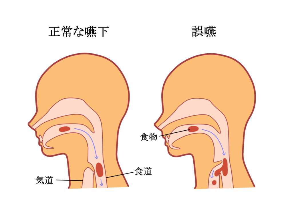 誤嚥とは本来食道に入るべき食物などが気管(気道)に入ることを言います。