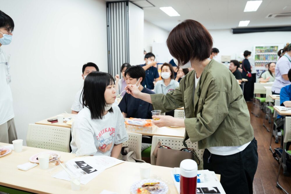 食事介助を介助者が立ったままで行うと、ご利用者の顎があがり誤嚥のリスクにつながります。常日頃から気を付けていますが、改めて自分たちで食べることで再認識をしました。