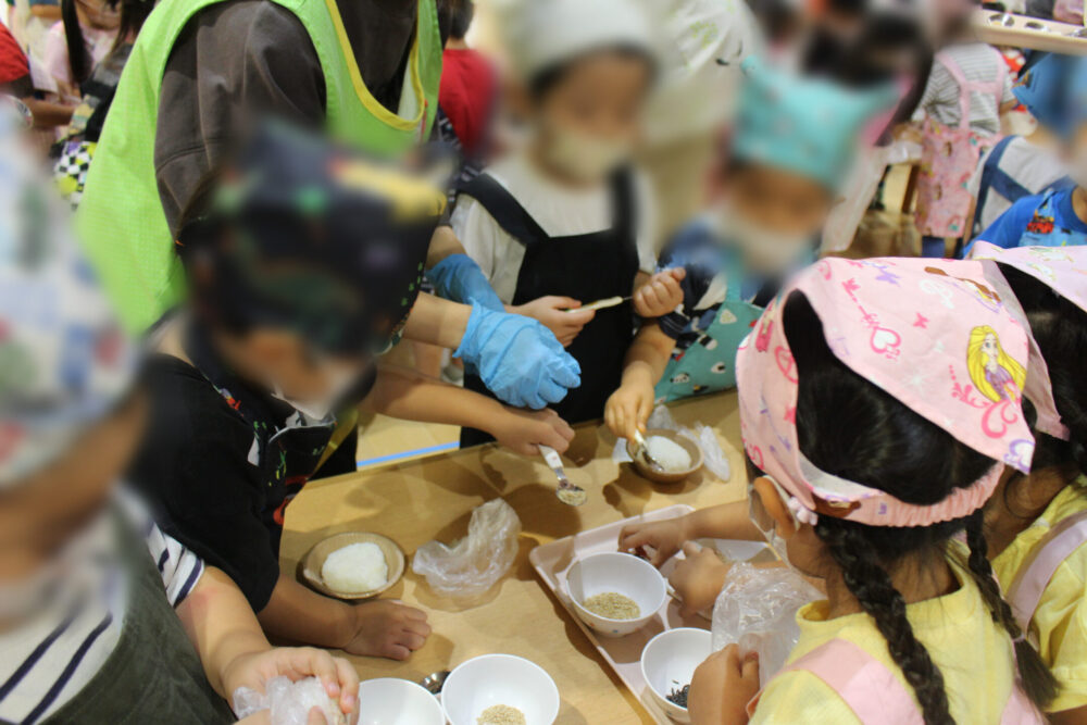 今日はふりかけ作りをしました。初めに栄養士から、お米に関するクイズが3問ありました。