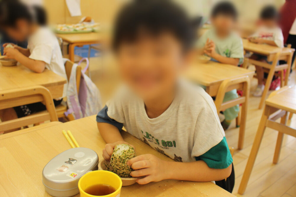 出来たおにぎりは、給食でおいしくいただきました。