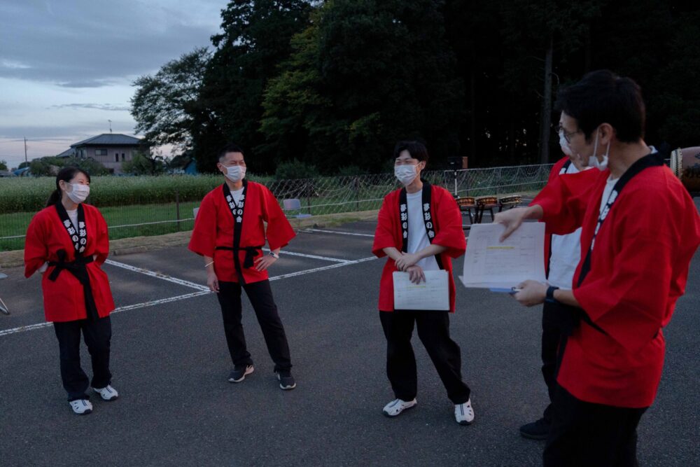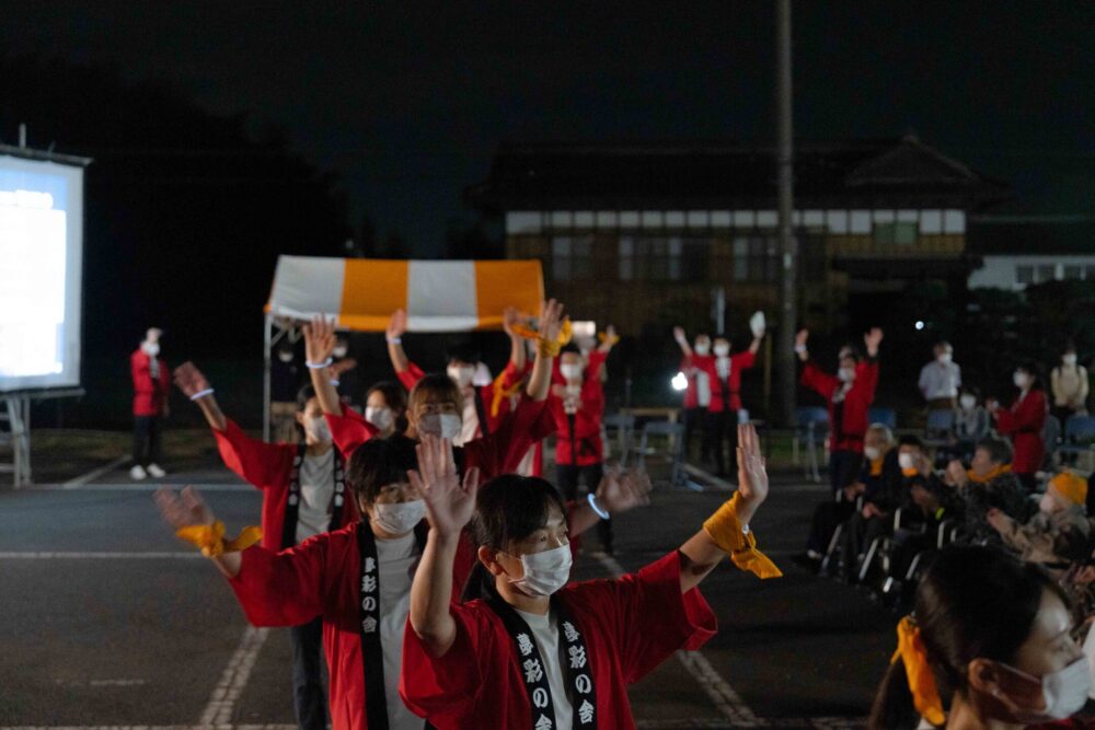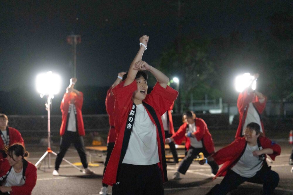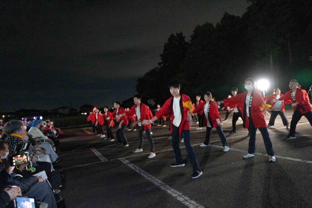 演舞前の円陣では、キャプテンから「皆さんに元気を届けられるよう、一生懸命楽しく踊りましょう!」と声が飛び、全員の士気を鼓舞。
