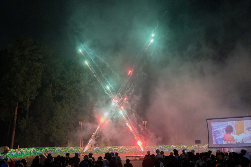 最後を飾ったのは、職員が制作した動画に合わせた花火のフィナーレ。