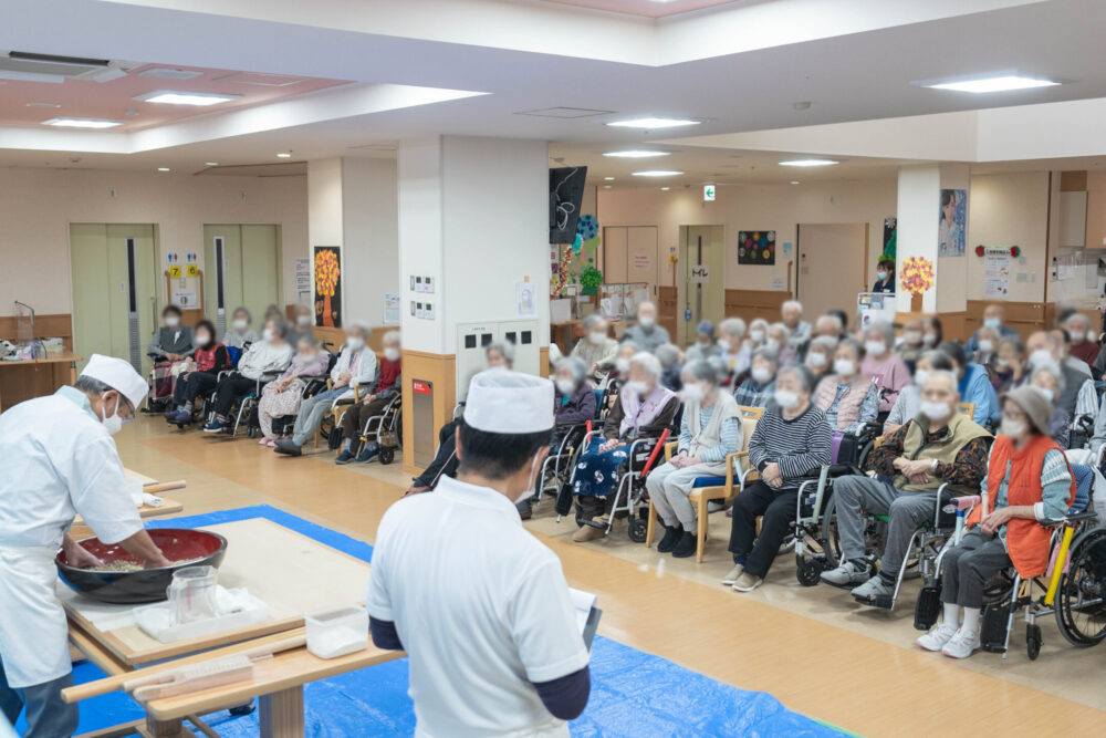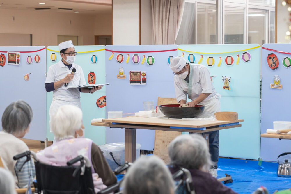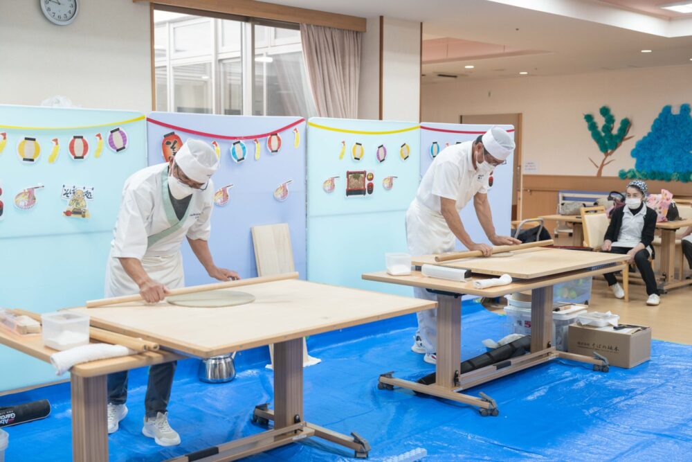 ご利用者の皆さんの目の前でおそばを打っていただきました👏