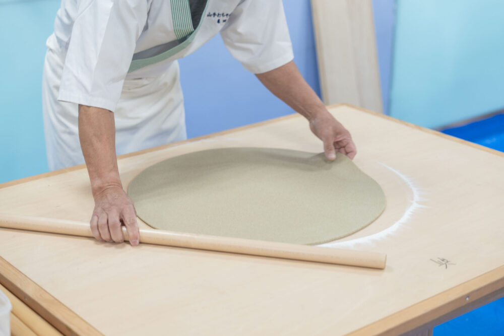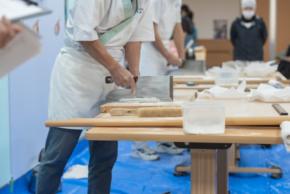 また、今回は「江戸打ち」と「戸隠打ち」という2つの打ち方でもおそばを打っていただきます。打ち方が変わるだけで、味や食感も違ってくるのだそうです。