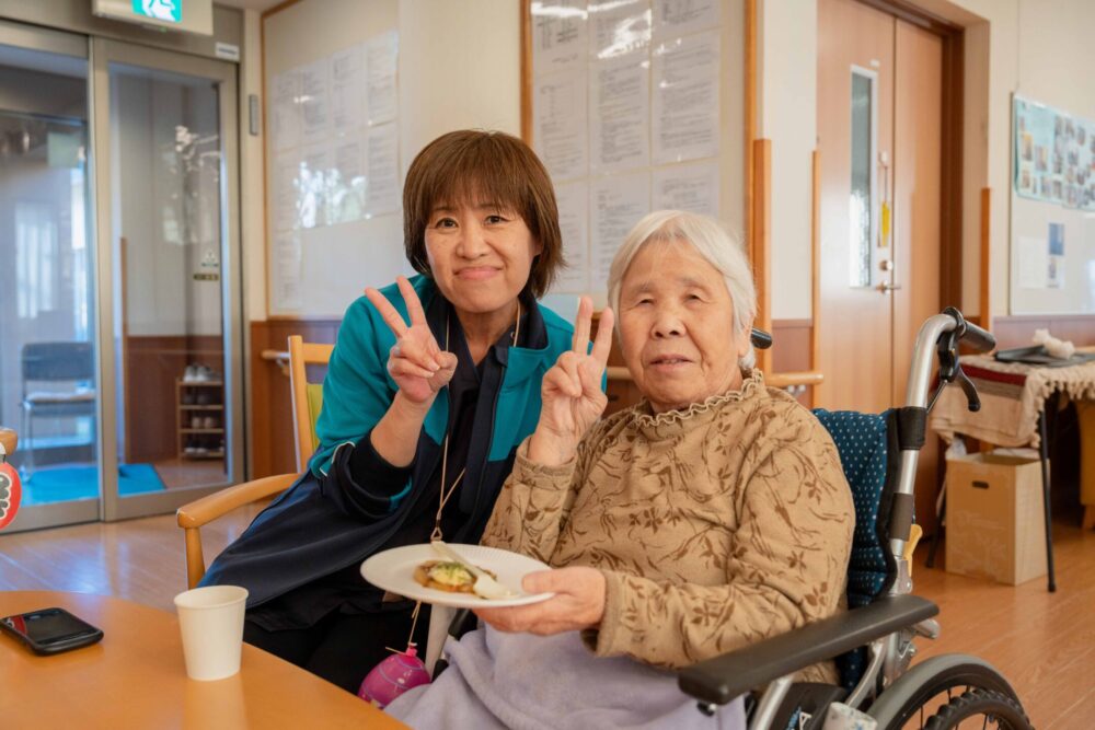 「お好み焼きはおやつにぴったり」「甘酒は体が温まって、この時期にぴったりね」と、テーブルを囲んでご利用者と職員の会話も盛り上がりました。