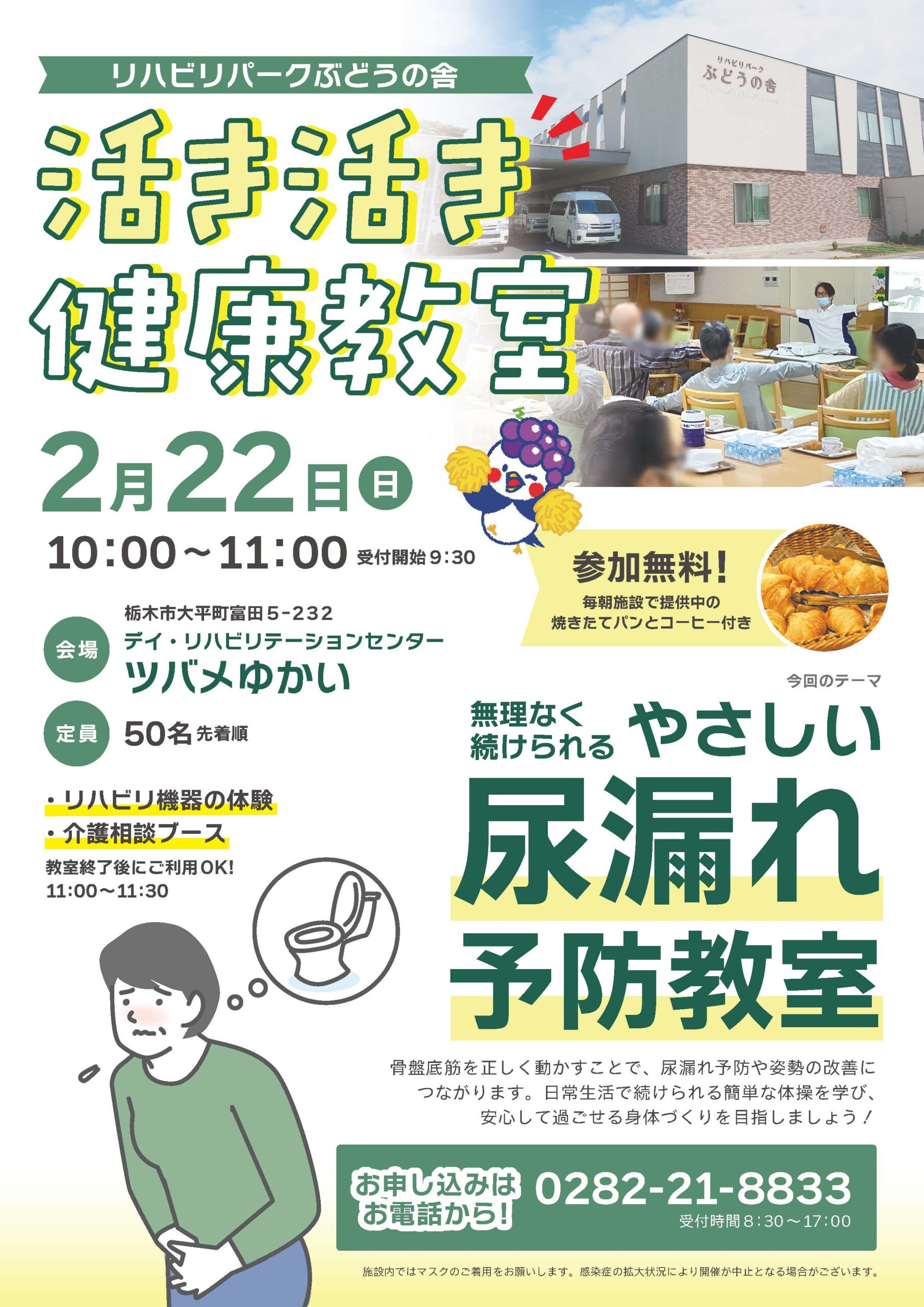 介護老人保健施設ぶどうの舎(ツバメゆかい)では、令和8年2月22日(日)に第6回活き活き健康教室を開催します。