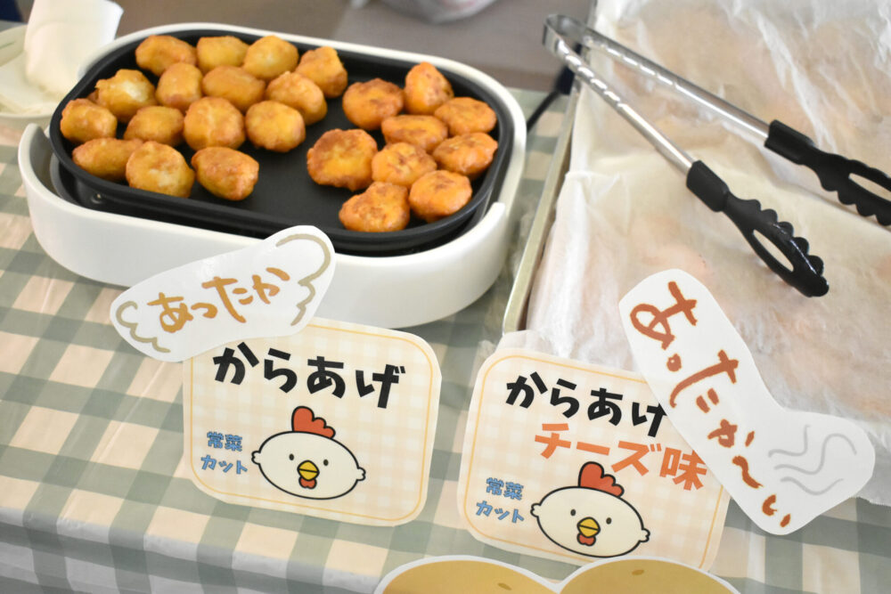 からあげは通常の味に加えてチーズ味の2種類をご用意し、お好きなものを選んでいただきました。