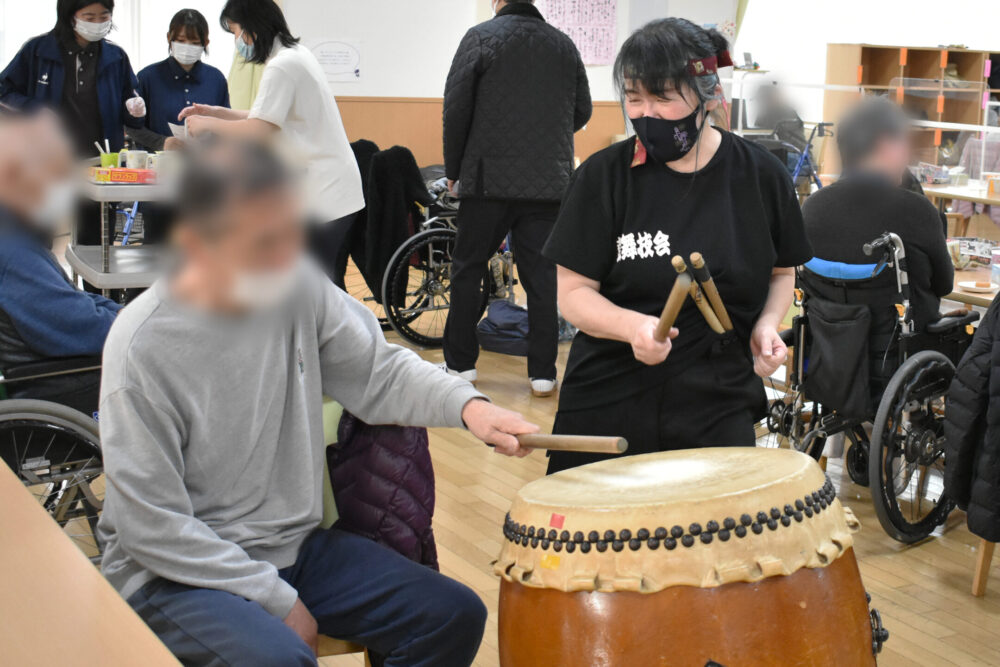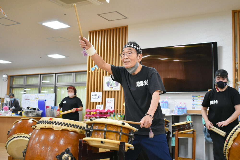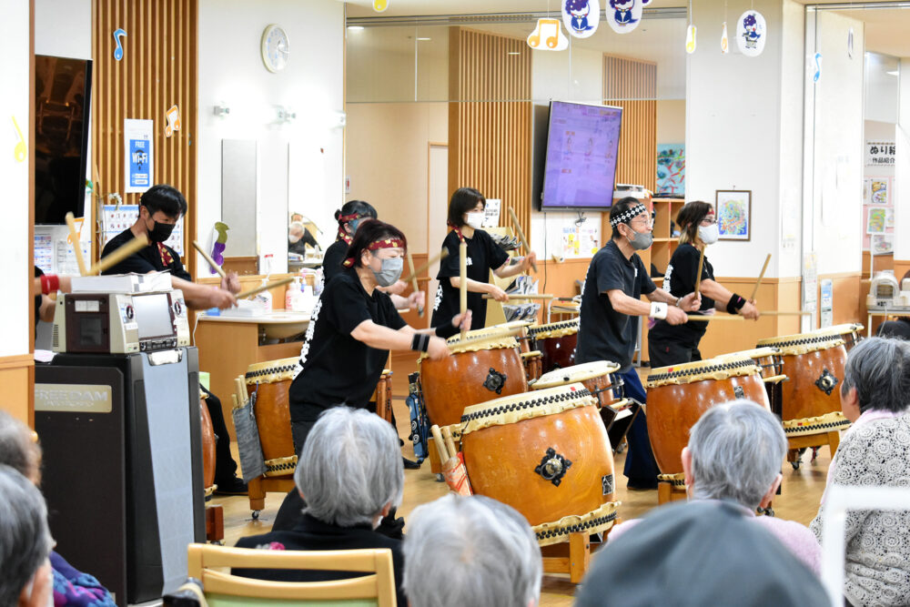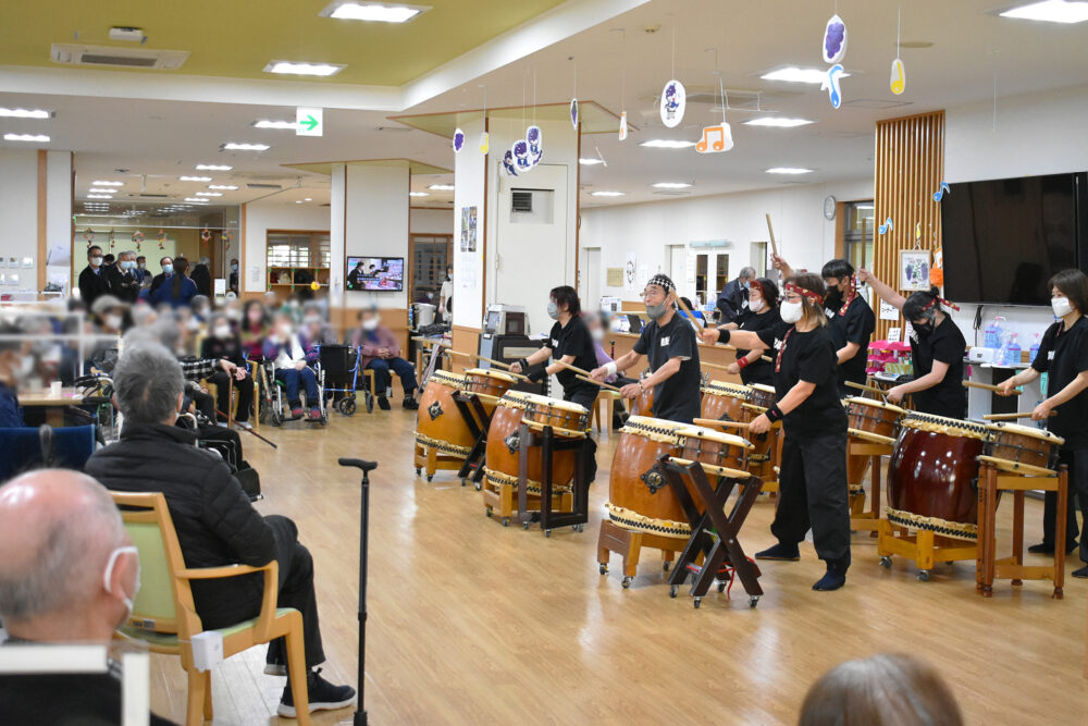デイ・リハビリテーションセンターツバメゆかいに、鼓舞技会の皆さんがお越しくださり、迫力満点の和太鼓演奏をご披露くださいました🔥