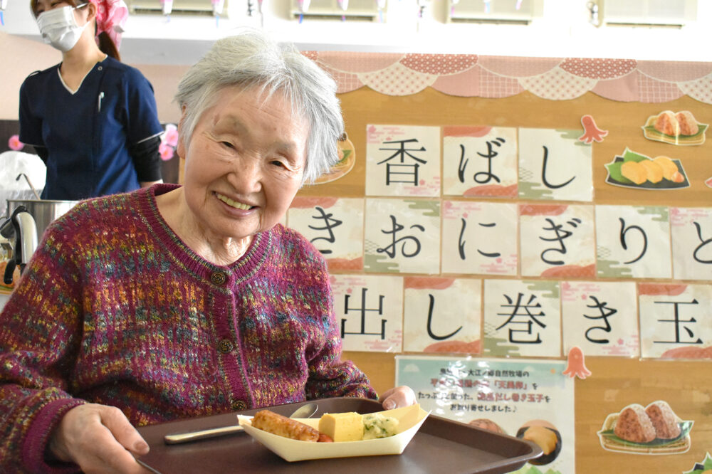 介護老人保健施設ひまわり荘では、「あつあつ!ほかほか♪香ばし焼きおにぎり~大江ノ郷自然牧場のだし巻き玉子を添えて~」と題した食レクを行いました🍙