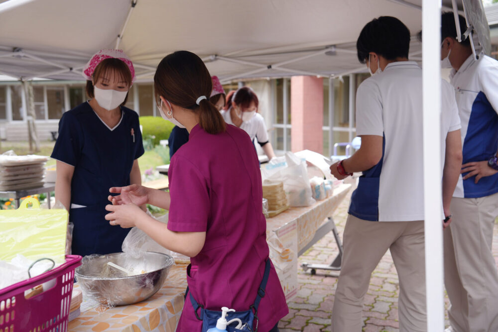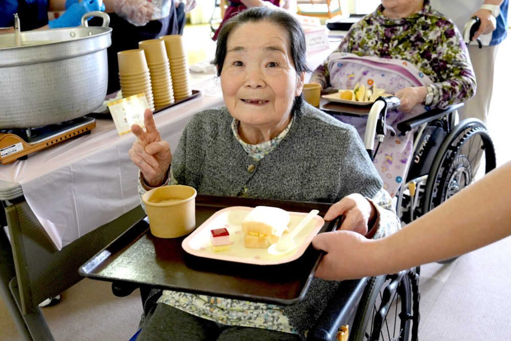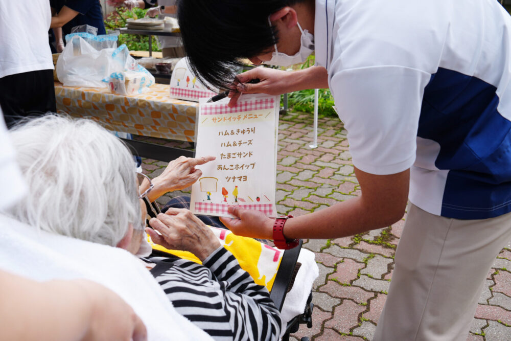 目の前で具材が挟まれていくライブ感あふれる演出に、ご利用者の顔には自然と笑みがこぼれていました。