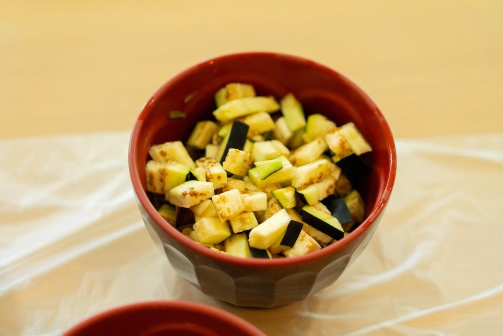収穫した野菜は細かく刻み、
