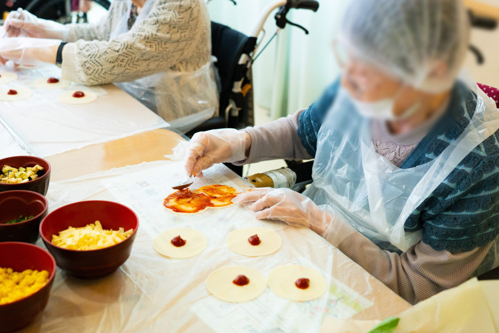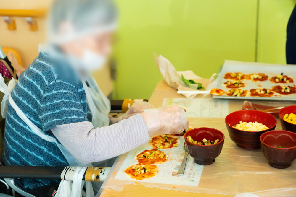 収穫した野菜を使ってピザ作り! ひまわり荘