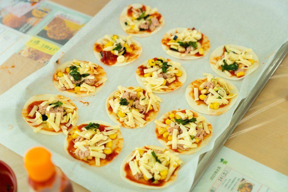 ちなみに生地はパン生地ですと、食べることが難しい方もいらっしゃいますので、今回は餃子の皮を使用しています。