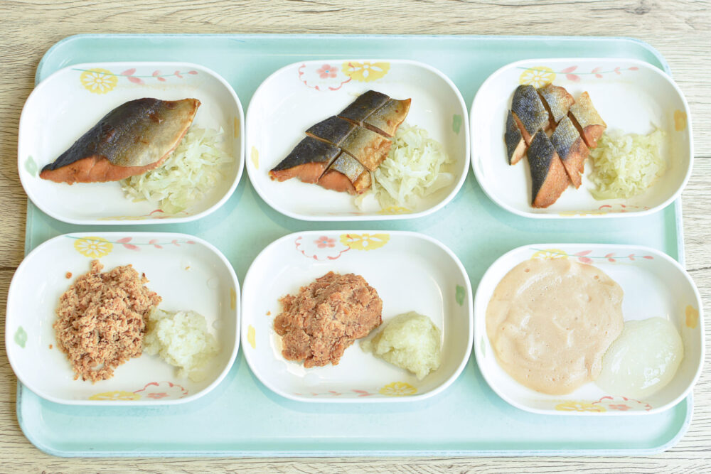 嚥下機能(食べものを飲み込む力)などを考慮し、盛り付ける食事の分量や食材の割合、食形態などを、