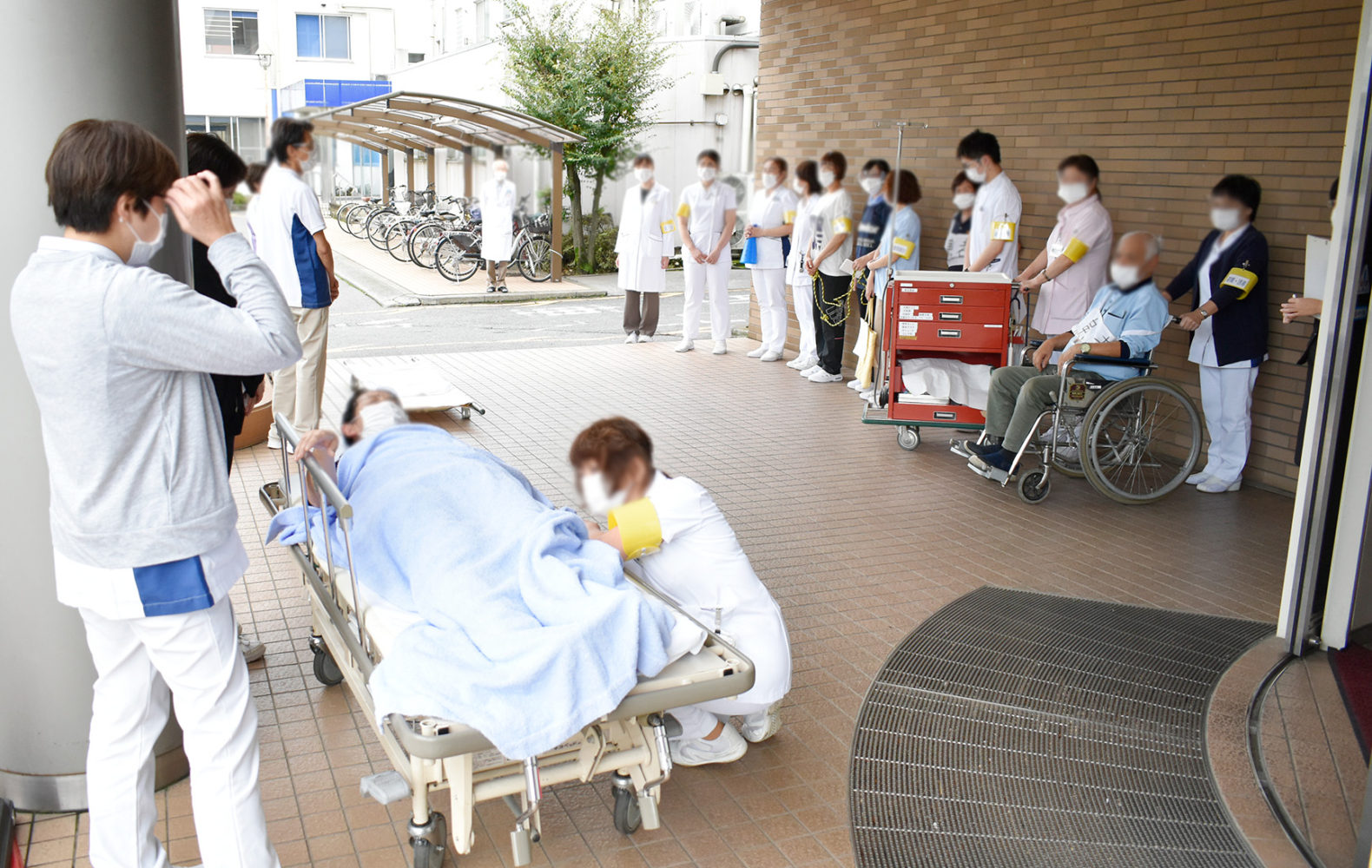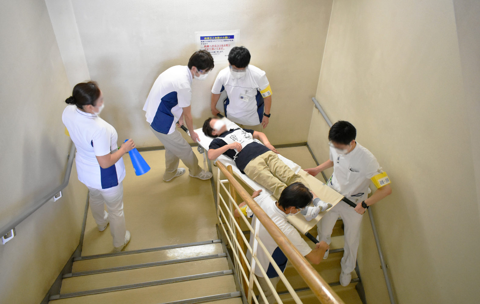 10月14日(金)に、防火訓練を行いました。病棟から出火した想定で、初期消火や院内放送、避難誘導の訓練をしました。